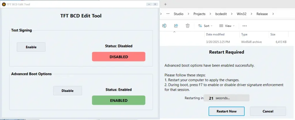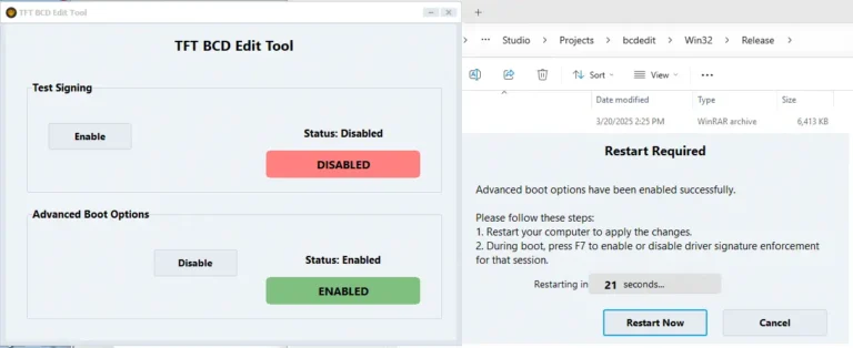 Our specialized utility provides a user-friendly interface to manage Windows Boot Configuration Data (BCD) settings that control driver signature enforcement. Unlike complex command-line methods, our tool offers: